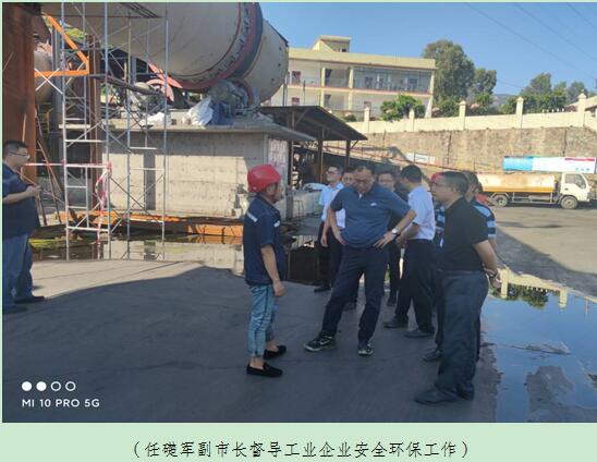 2021年7月19日下午,市政府副市长任礎军赴东区和西区,督导企业安全生产和环境保护工作。市政府副秘书长郭勇、市经济和信息化局向丽副局长、市生态环境局王天武总工、东区政府童永副区长、西区政府李其桦副区长等参加了督导检查。